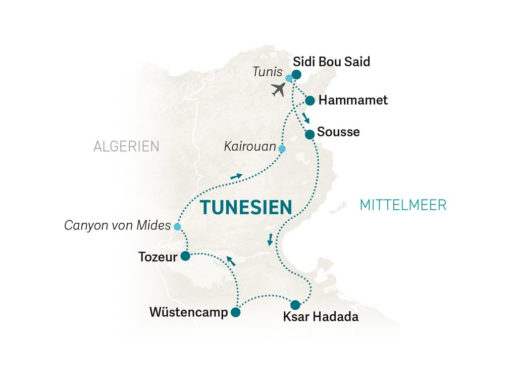 Transfer zum Flughafen von Tunis • Rückflug in die Heimat (nicht im Preis inkludiert)