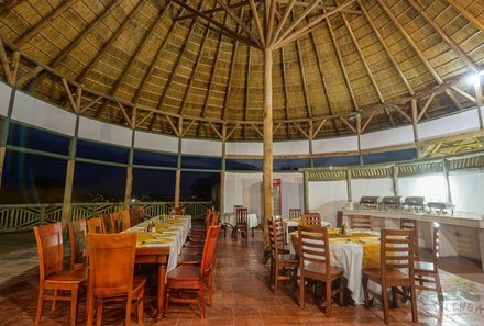 Das Restaurant der Lodge befindet sich in einem großen Speisezelt, von wo aus man den Kazinga Kanal und die Rwenzori-Bergkette überblicken kann. Hier wird Ihnen ein 4-Gänge-Menü serviert, mit Produkten aus Kampala.
