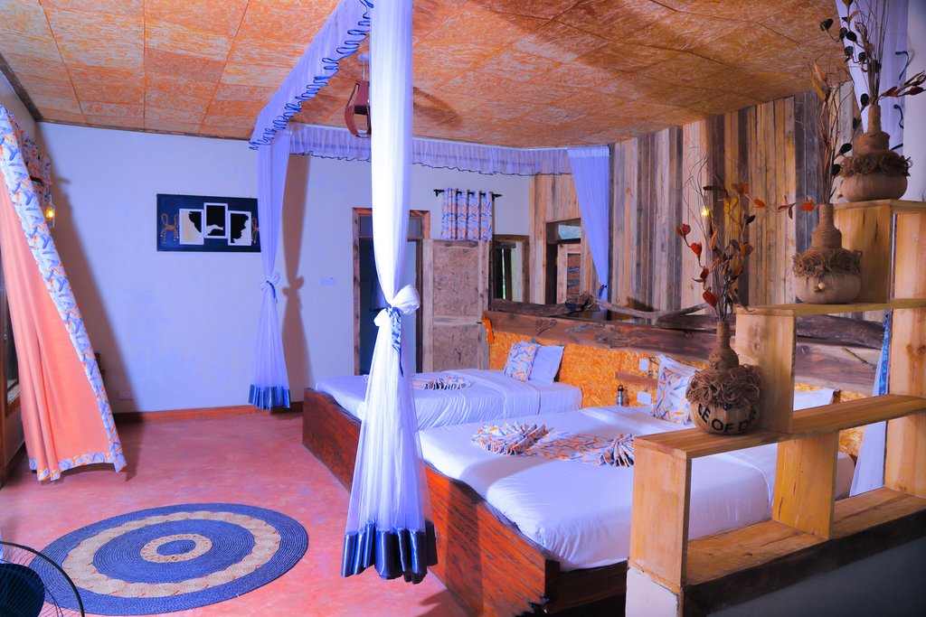 Jedes Zimmer spiegelt zeitgenössisches afrikanisches Design wider und schafft eine harmonische Verbindung von Stil und Gemütlichkeit – perfekt für Familien, Paare oder Gruppen, die Nähe zur Natur und Eleganz schätzen. Die vollständig ausgestattete Anlage lädt zu genussvollen Speisen à la carte oder geselligen Bar-Abenden ein – stets mit Blick auf das weite Land und den atemberaubenden Sonnenuntergang.