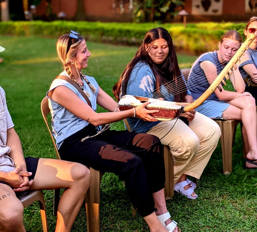 Anschließend erwartet uns am Abend ein besonderes kulturelles Erlebnis: Wir tauchen ein in die lebendigen Traditionen des Königreichs Bunyoro. Beim traditionellen Tanz- und Musikprogramm erleben wir mitreißende Rhythmen und farbenfrohe Tänze. Die lokalen Tanzgruppen laden uns ein, selbst aktiv zu werden – hier können Teens und Familien gemeinsam die Bewegungen ausprobieren und jede Menge Spaß haben. Dazu lernen wir außergewöhnliche traditionelle Instrumente kennen.