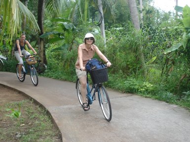 Nach dem Mittagessen geht die Reise mit dem Schiff los. Bis zur Ebbe machen wir Halt, um eine Mekong-Insel zu Fuß oder mit dem Rad zu erkunden. Vor Ort gibt es einige Manufakturen, die wir besichtigen können.