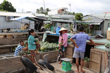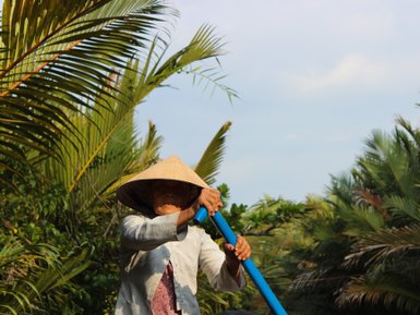 Das Mekong Delta ist mit drei Ernten pro Jahr zweifelsohne Vietnams Reiskammer und zugleich auch die Region mit der höchsten Bevölkerungsdichte in Vietnam. Der Fluss bestimmt hier das Leben: Ganze Familien leben auf den Schiffen, inklusive Großeltern, Hunden und Hühnern. Mit und an dem Wasser des Flusses wird gewaschen und gearbeitet, gebadet und gespielt. Neben dem Reisanbau leben viele Familien von der Fischzucht und der Anpflanzung von tropischen Früchten, Gemüse, Zuckerrohr und Kokosnüssen. All diese Waren werden über das feingliedrige Netz der Kanäle in diesem riesigen Gebiet transportiert. Das Mekong-Delta ist bekannt für seine fruchtbare Landschaft und das tropische Klima, das den Anbau einer Vielzahl von Früchten ermöglicht, darunter Bananen, Ananas, Zitrusfrüchte, Mangos, Rambutan und Drachenfrüchte. Diese Früchte werden hier das ganze Jahr über angebaut.