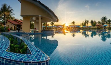 Das 4-Sterne-Resort Pandanus liegt eingebettet inmitten eines 10 Hektar großen, tropischen Garten. Die Unterkunft befindet sich unmittelbar am schönen, weißen Sandstrand und in ca. 1,6 km Entfernung zum Markt von Mui Ne – ideal für eine Verlängerung eurer Vietnam Familienreise.