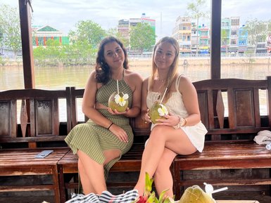 Den Abend lassen wir bei einem herrlichen Sonnenuntergang auf dem Fluss ausklingen. Aufgetragen werden hier verschiedene, köstliche Gerichte, bei der auch die Kids etwas nach ihren Vorstellungen finden. Auf dem Fluss und an seinen Ufern wird es allmählich ruhiger und vielleicht beobachten wir einige Fledermäuse, die über uns hinweg segeln.