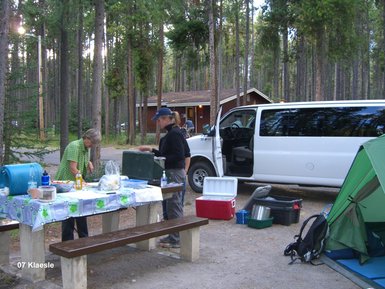 Aufbau der Zelte • 2–3 stündige Wanderung entlang des Minnewanka Sees • Lagerfeuer