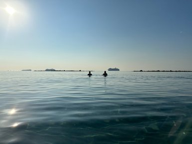 Nach dem Check-In können wir bereits einen ersten Sprung ins Meer wagen, denn unser Hotel ist direkt am Strand gelegen.