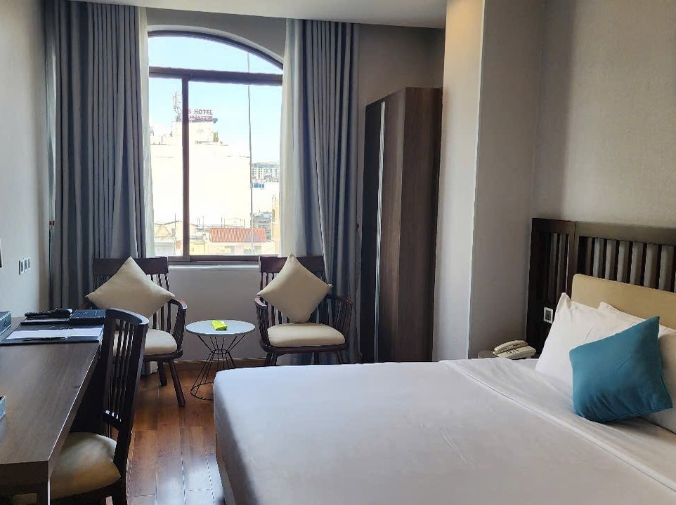 Das Happy Life Grand Hotel & Sky Bar liegt zentral im Herzen von Ho-Chi-Minh-Stadt und ermöglicht einen unkomplizierten Zugang zu beliebten Sehenswürdigkeiten wie dem Museum der Schönen Künste und dem Ben Thanh Street Food Market. Die Zimmer des Hotels sind modern eingerichtet und bieten Annehmlichkeiten wie kostenfreies WLAN und Flachbild-TVs. Im hoteleigenen Restaurant können Gäste eine breite Auswahl an kulinarischen Genüssen genießen, von asiatischen und europäischen Gerichten bis hin zu klassischen vietnamesischen Spezialitäten. Für Freizeit und Entspannung stehen ein Außenpool, ein Fitnesscenter und die Lucky Sky Bar auf dem Dach bereit, von der aus sich ein spektakulärer Panoramablick auf die Stadt bietet. Darüber hinaus bietet das Hotel praktische Dienstleistungen wie eine 24-Stunden-Rezeption und einen Flughafentransfer.