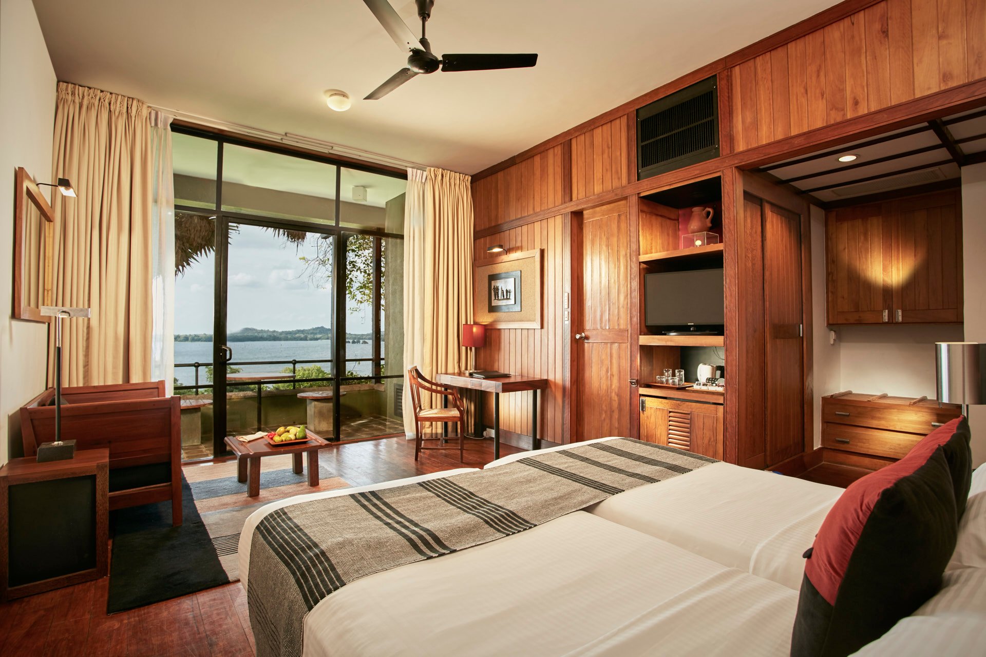Das Kandalama Heritance Hotel liegt in Hügellage mit dem berühmten Sigiriya Felsen im Hintergrund. Das exklusive Hotel mit außergewöhnlicher Bauweise liegt im üppig grünen Dschungel an einem See und bietet mit drei Swimmingpools viel Badespaß. Lauscht den Geräuschen der Tiere im Dschungel und genießt die wunderschöne Atmosphäre. Zur Anlage gehören außerdem ein Tennisplatz, ein Fitnesscenter und ein Spa-Bereich.