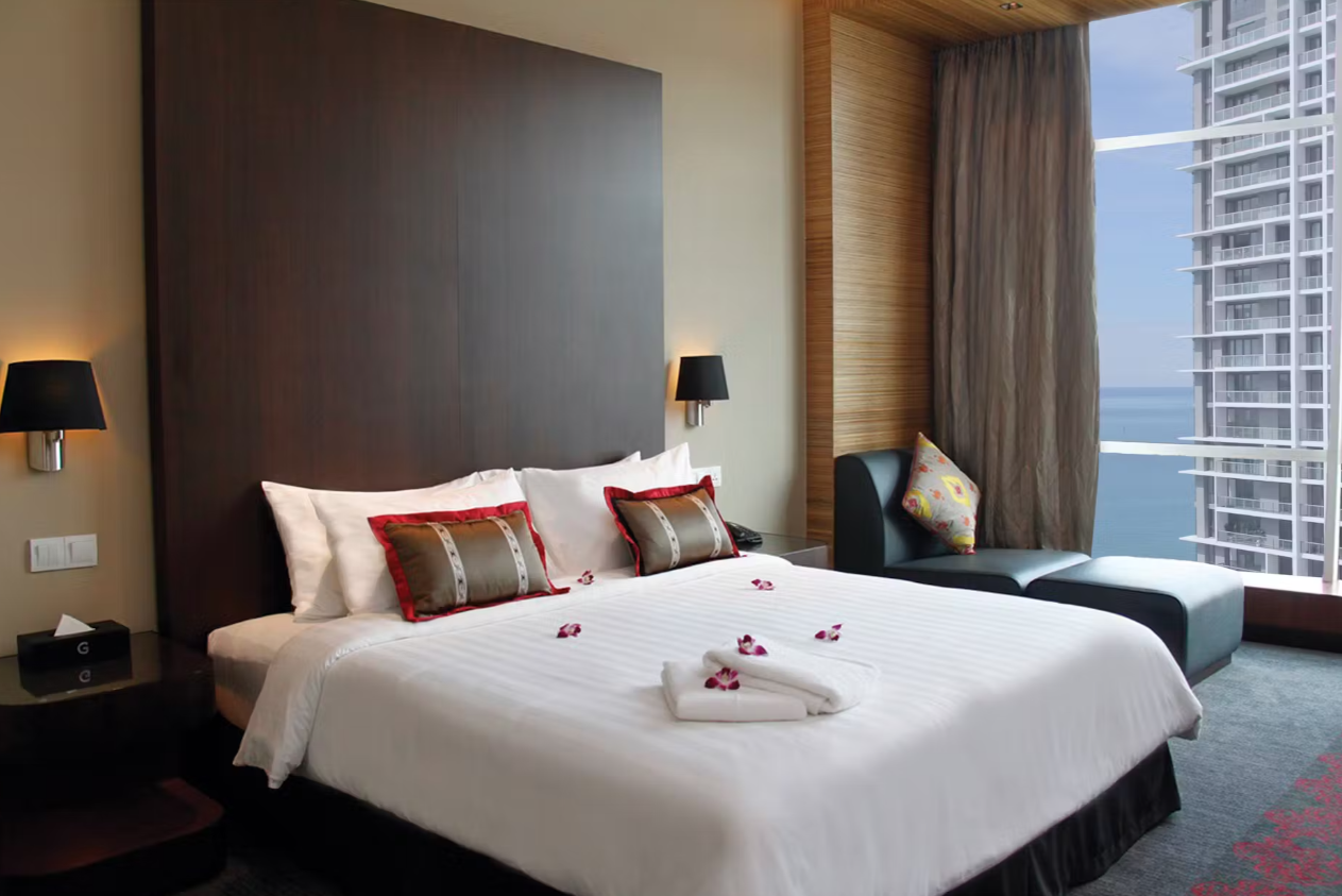 Die Zimmer sind modern ausgestattet mit LED-Fernsehern und Satellitenkanälen, kostenlosem High-Speed-Internetzugang, einem Schließfach und einer Power-Dusche ausgestattet. Jedes Zimmer verfügt über raumhohe Panoramafenster, die einen atemberaubenden Blick entweder auf die Stadt Kota Kinabalu oder das Südchinesische Meer und die ruhigen Inseln bieten.