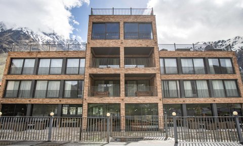 Das Hotel Memoir liegt im Zentrum von Kasbegi und bietet einen komfortablen Aufenthalt mit atemberaubendem Blick auf die Gergeti Dreifaltigkeitskirche und den Mkinvartsveri. Die gut ausgestatteten Zimmer verfügen über Klimaanlage, Fernseher, WLAN, Minibar und ein eigenes Bad – alles, was für einen entspannten Aufenthalt nötig ist.
