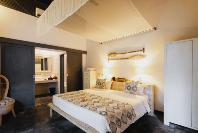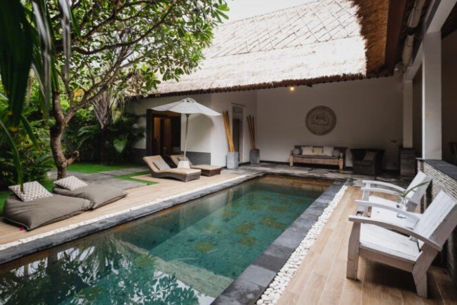 Die stilvollen Villen des Indiana Kenanga sind geschmackvoll gestaltet und verbinden traditionelles balinesisches Design mit zeitgenössischem Luxus. Jede Villa verfügt über euren eigenen privaten Pool, eine großzügige Terrasse sowie Annehmlichkeiten wie Klimaanlage, kostenloses WLAN und ein elegantes Badezimmer mit hochwertigen Pflegeprodukten. Die ruhige Atmosphäre und der Blick auf die üppigen Gärten schenken euch ein unvergessliches Urlaubserlebnis. Kulinarisch werdet ihr im hoteleigenen Restaurant „Kenanga“ verwöhnt, das euch eine exquisite Auswahl an internationalen und lokalen Gerichten bietet, während ihr den Blick auf den Ozean genießt.