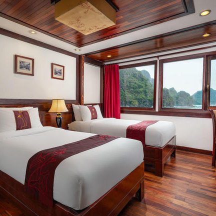 Eure Kabinen sind liebevoll ausgestattet mit Klimaanlage, eigenem Bad und wahlweise Queensize- oder zwei Einzelbetten – perfekt für euch als Eltern mit Kindern. Während die Landschaft draußen vorbeizieht, genießt ihr an Bord Komfort und Ruhe und lasst euch vom sanften Rhythmus des Wassers tragen. Ein unvergesslicher Moment auf eurer Reise durch Vietnams faszinierenden Norden.