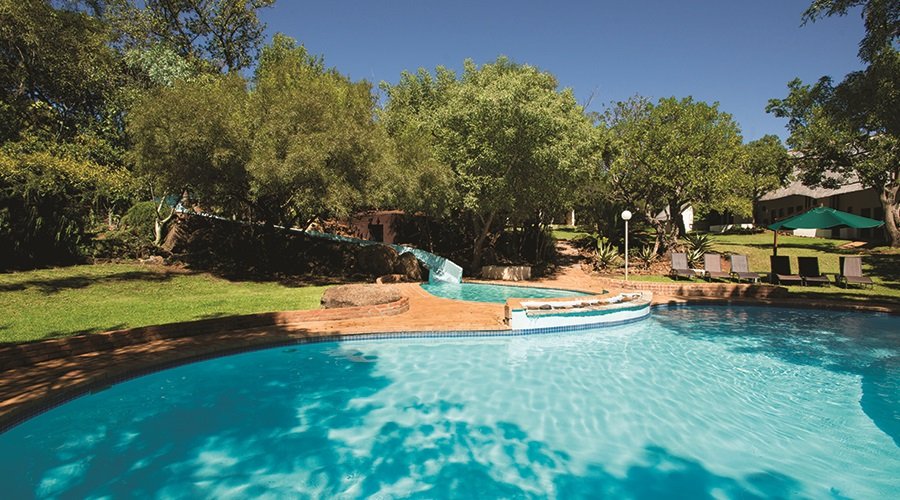 Die Kwa Maritane Bush Lodge befindet sich im Pilanesberg Nationalpark, an den Hängen eines zwei Milliarden alten Vulkans. Der malariafreie Nationalpark ist kleiner als der Krüger, bietet aber spektakuläre Tierbeobachtungen der hier beheimateten Big 5. Zur Lodge gehören ein Pool mit Rutsche und Liegen, ein kleiner Kinderspielplatz, ein Minigolfparcours und ein Tennisplatz sowie eine Lounge.