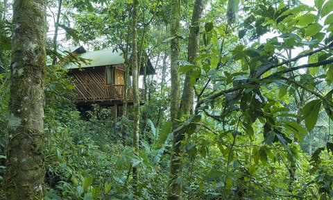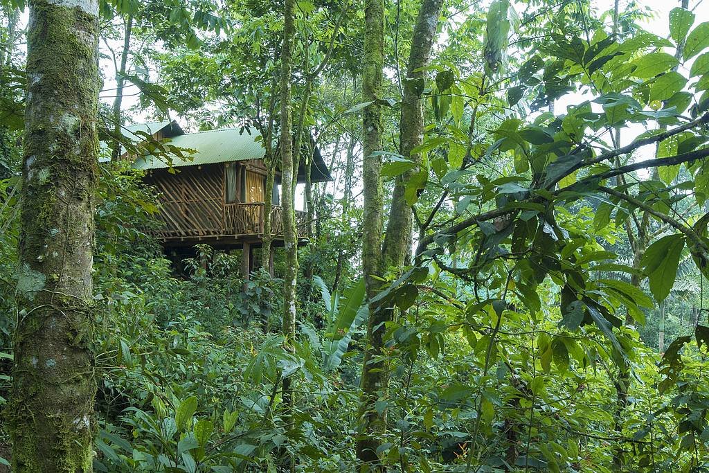 Bei der Übernachtung in der einfachen Lodge im Urwald habt ihr ein Privatbad mit Dusche sowie eine Terrasse. Die Holzhäuser sind rustikal, errichtet aus selbst angebauten Bäumen. Die Badezimmer und die Grundkonstruktion sind aus Beton, die Wände der Häuser sind aus stabiler Zeltplane, die Balkone und Terrassen aus Holz. Alles ist selbst gebaut und gezimmert von Einheimischen aus der Region. Es gibt einen Gemeinschaftsraum, in dem wir frühstücken und zu Abend essen. Am Abend erleben wir hautnah die Geräusche der Tiere im Urwald. Erwartet keinen Luxus, aber freut euch über kleine Annehmlichkeiten während eines abenteuerlichen Aufenthalts im Dschungel.