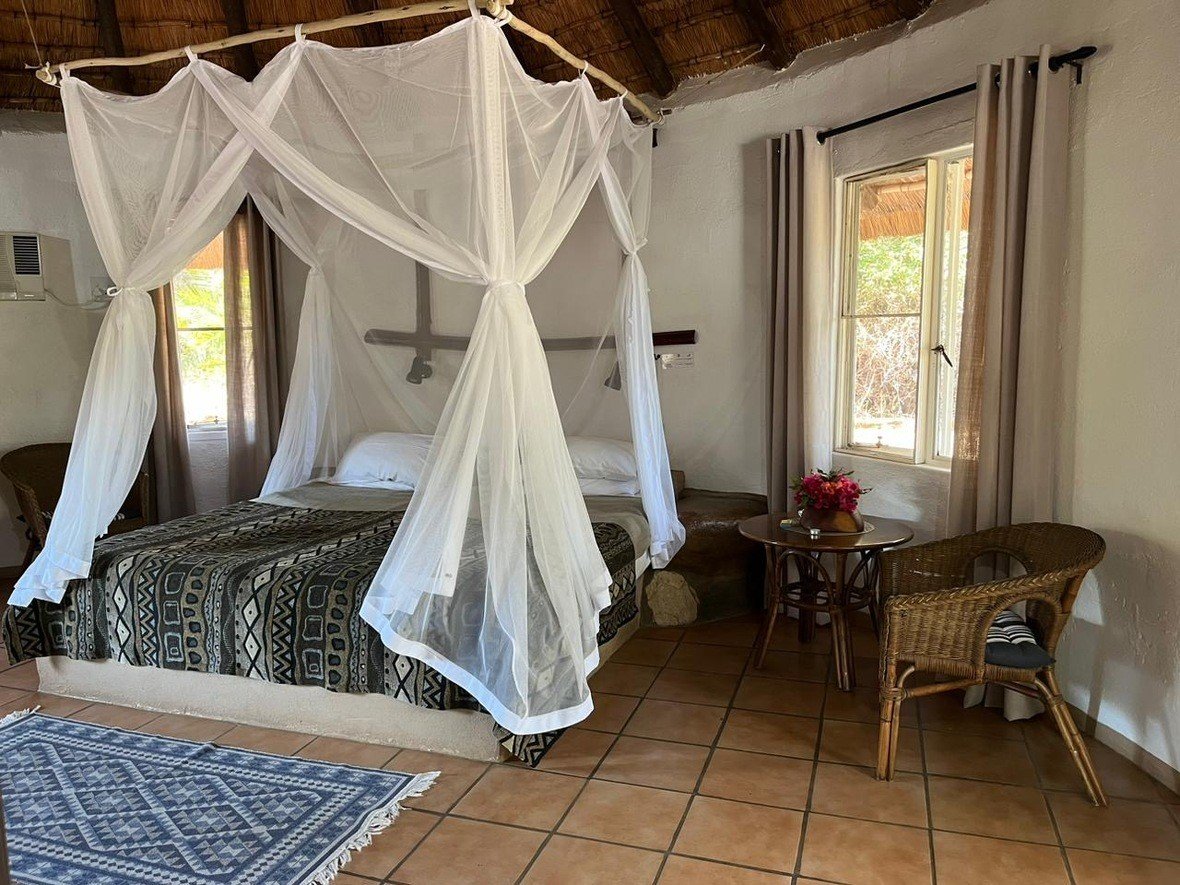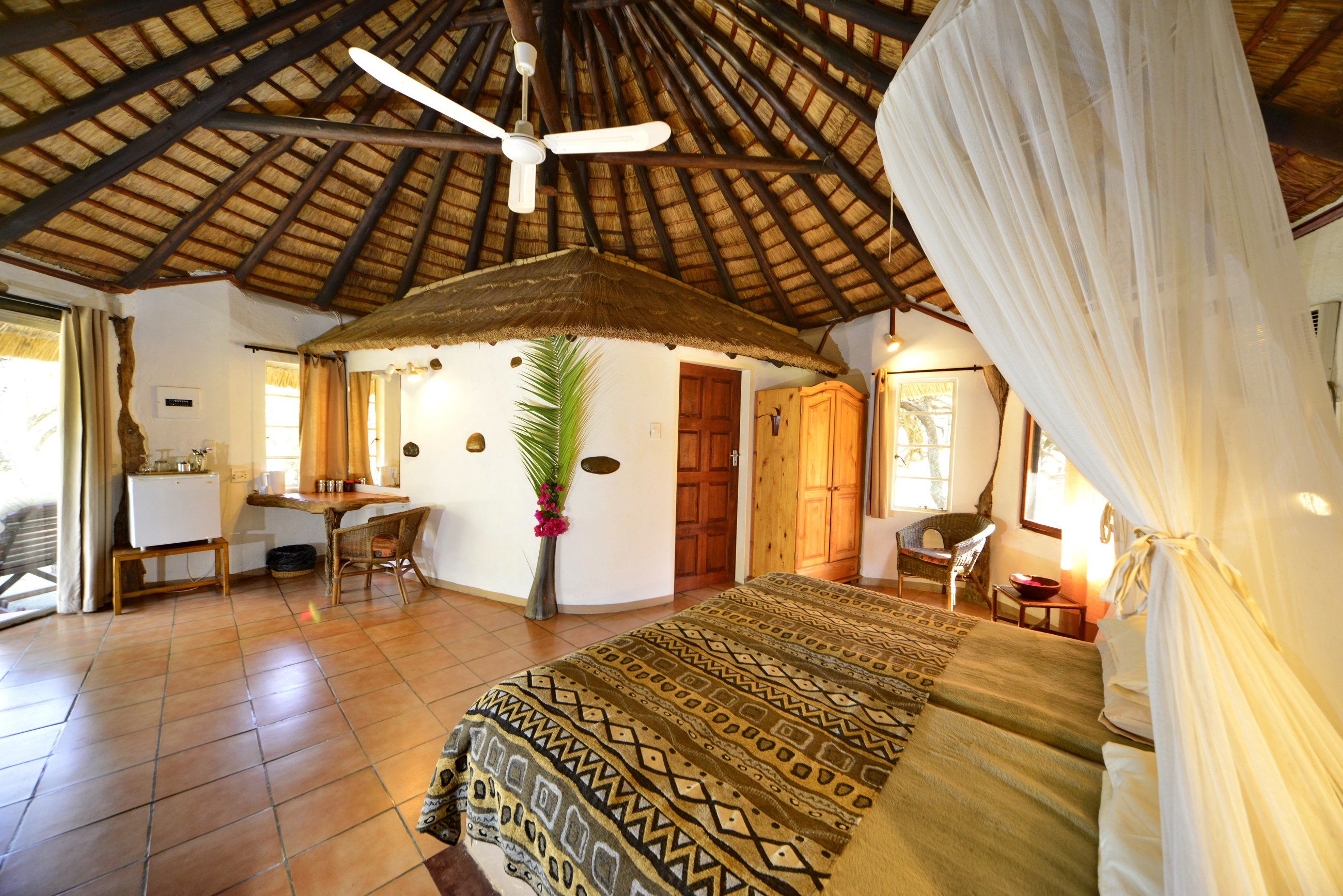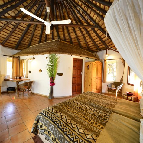 Durch die Unterbringung im eigenen, strohgedeckten Rondavel genießt ihr eure Privatsphäre. Die Rondavels liegen verstreut im großen Gartengelände. Die Zimmer sind mit Moskitonetzen, Deckenventilatoren oder Klimaanlage, Tee- und Kaffeezubereitung, Kühlschrank und Minibar, eigener Terrasse mit Liegen sowie einem eigenen Badezimmer ausgestattet.