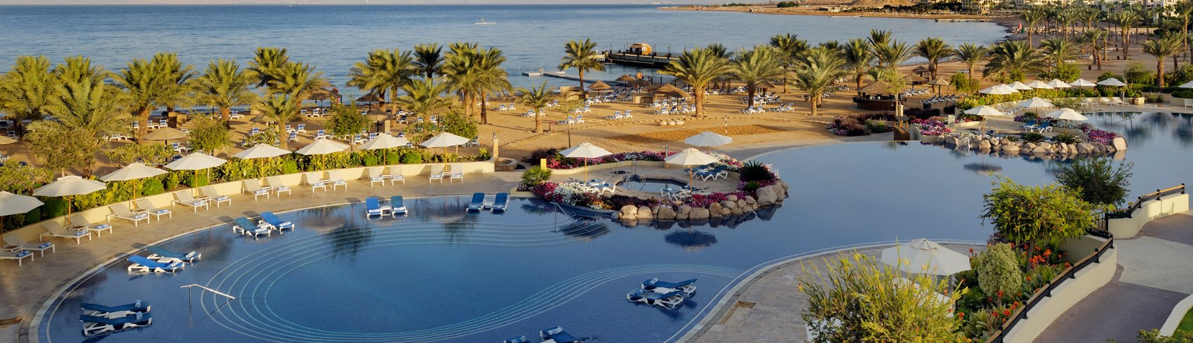 Das Mövenpick Resort & Spa Tala Bay Aqaba bietet einen Privatstrand direkt am Roten Meer. Zudem verfügt das 5-Sterne Hotel über mehrere Pools sowie ein 1.200 m² großes Spa- und Wellnesscenter zur Entspannung. Die kleinen Gäste können sich im Kinderclub des Resorts austoben. In den verschiedenen Restaurants und Bars genießt ihr unter anderem frische Meeresfrüchte und italienische Küche.