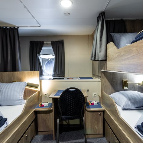Mit 91 Metern Länge beherbergt die Ortelius bis zu 108 Passagiere in 50 Kabinen, verteilt auf vier Kabinenkategorien – von Vierbettkabinen mit Bullaugen bis hin zu komfortablen Superior Kabinen mit Doppelbett. Jede Kabine verfügt über ein eigenes Bad mit Dusche/WC. Zu den öffentlichen Bereichen zählt ein Restaurant, ein Vortragsraum und eine Bar. Besonders beliebt ist die offene Brücke mit einer besonderen Aussicht aufs Meer. Für Landgänge stehen Zodiacs bereit, die über Gangways sicher bestiegen werden können.