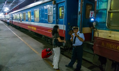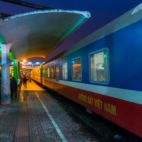 Der Zug ist klimatisiert und ihr reist nach Möglichkeit in einem Abteil mit den anderen Reiseteilnehmern. Der Zug ist für vietnamesische Verhältnisse komfortabel und ihr könnt durch die Fenster die Landschaft beobachten. Auf dieser Fahrt erhaltet ihr Einblicke in das Leben der Einheimischen: Beim Einsteigen auf den Gleisen, beim Vorbeifahren an Hinterhöfen, Friedhöfen, Feldern und Fabriken. Auf einer Fahrt im Schlafwagen, kommt man sehr schnell ins Gespräch mit den mitreisenden Familien.
