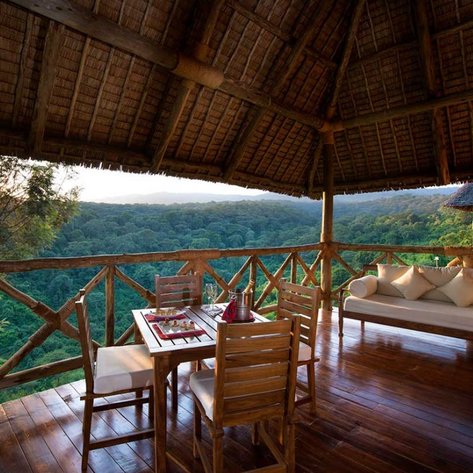 Dieses exklusive Retreat umfasst geräumige, private Holzblockhütten, die mit einem Kamin, einem eigenen Balkon und stilvollem Dekor ausgestattet sind, das die Schönheit der Umgebung widerspiegelt. Die Lodge verfügt über ein erstklassiges Restaurant, das eine Mischung aus internationaler Küche und regionalen Spezialitäten serviert, sowie eine gemütliche Bar für entspannte Abende.