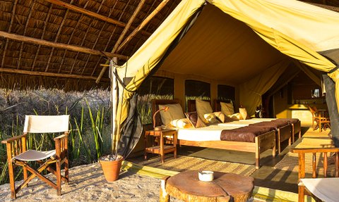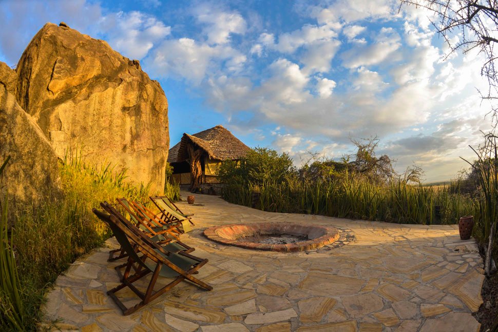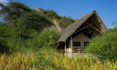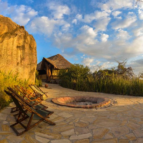Das Camp ist an den schattigen Seiten eines Kopje errichtet. Die niedrigen Hügel, die sich aus der Ebene erheben, sind mit ihren massiven Granitblöcken, Bäumen und Büschen ein dramatisches Merkmal der Savanne. Die komfortablen Zelte bieten eine Veranda mit herrlichem Blick über die Ebenen, ein von Bäumen gesäumtes flaches Tal sowie das spektakuläre Ngorongoro-Hochland und die Berge.