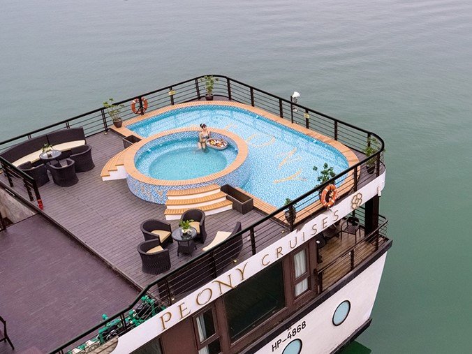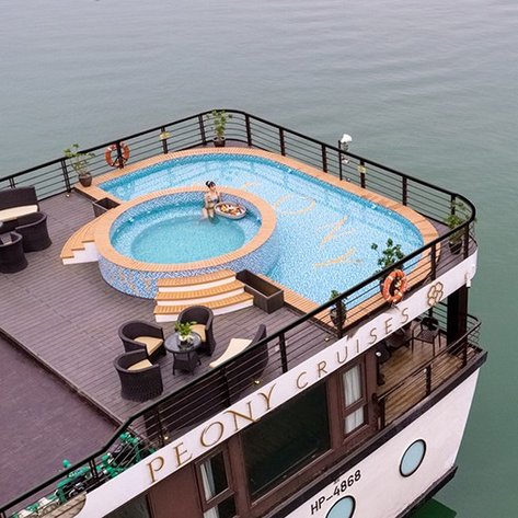 Auf einer hochwertigen Dschunke schippert ihr zu den Highlights der Halong Bucht. Während eurer Zeit auf der Dschunke von Peony Cruise könnt ihr den Spa-Bereich aufsuchen oder auf dem Sonnendeck entspannen. Weitere Aktivitäten werden vor Ort angeboten.