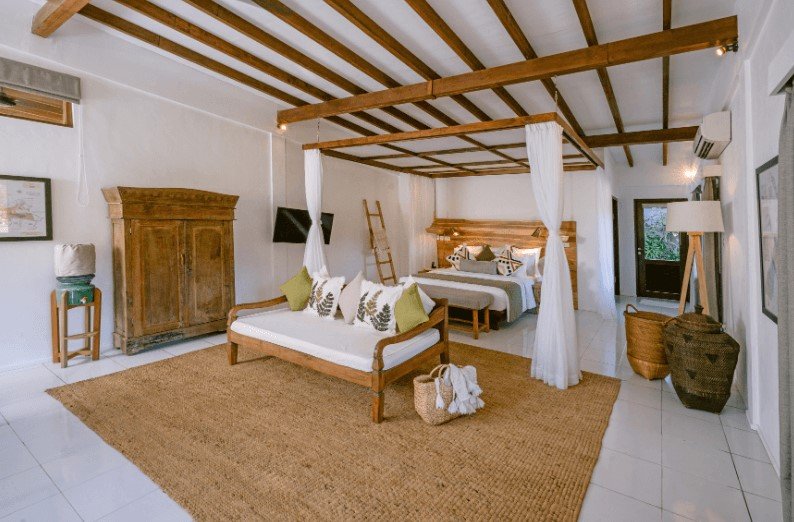 Die stilvollen Villen überzeugen mit moderner Ausstattung, wie klimatisierten Schlafzimmern, halb offenen Badezimmern und privaten Terrassen – ideal für Familien. Ein Infinity-Pool mit Meerblick, ein hauseigenes Restaurant mit köstlicher indonesischer und internationaler Küche sowie ein Fahrradverleih machen euren Aufenthalt besonders angenehm.