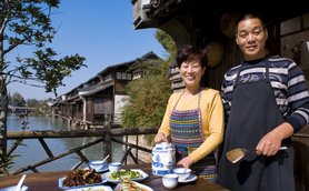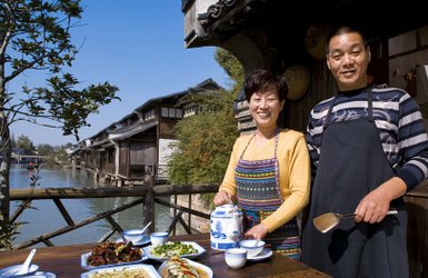 Nach dem Frühstück werdet ihr von eurem Fahrer am Hotel abgeholt und fahrt in Richtung Westen ins malerische Wasserdorf Wuzhen. Die Fahrt führt euch aus dem Trubel der Großstadt in eine ganz andere Welt.