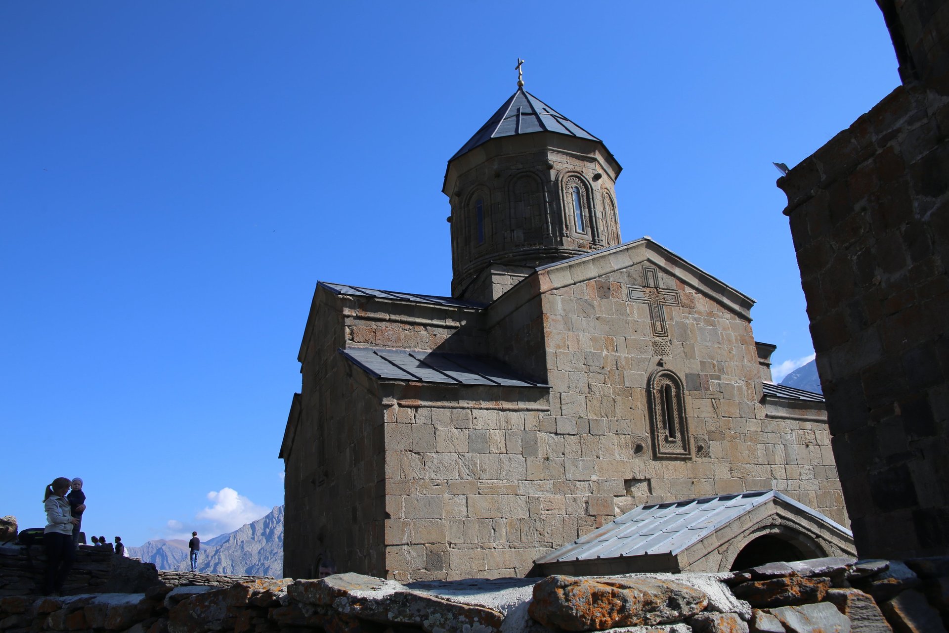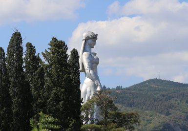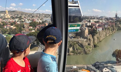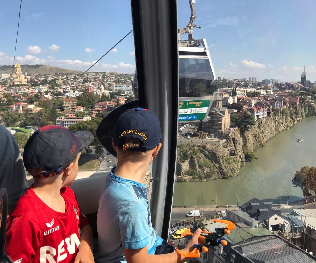 Mit der Seilbahn geht es bequem hinauf zur Festung Narikala, von wo aus sich ein großartiger Blick über die bunte Stadt eröffnet. Auch das imposante Monument der „Mutter Georgiens“ ist hier zu sehen – ein beliebtes Fotomotiv bei kleinen und großen Reisenden.