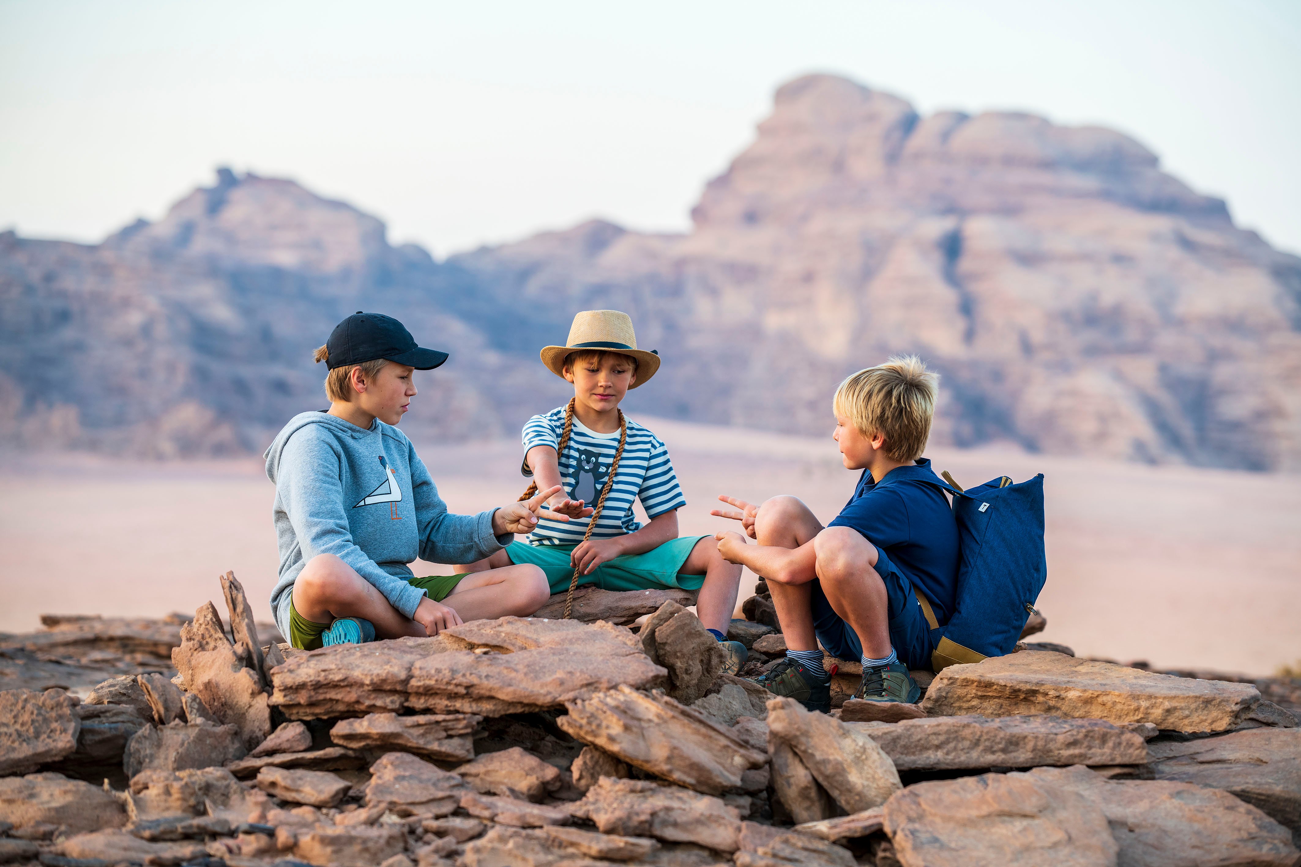 Neben dem Toten und Roten Meer, wo ihr euch mit den Kindern am Strand und Pool im 5-Sterne-Resort erholen könnt, ist das Wadi Rum der Höhepunkt der Familienreise in Jordanien. Die Wüste Wadi Rum in Jordanien diente schon oft als Filmkulisse und ist ein wunderbarer Abenteuerspielplatz für Klein und Groß. Gemeinsam übernachtet ihr mitten in der Wüste in einem Beduinenzelt unter dem funkelnden Sternehimmel. Eine Jeeptour durch das Sandmeer haben wir fest im Programm inkludiert – hierbei gibt es auch ausreichend Zeit, um die Dünen zu erklimmen, auf Felsen zu klettern und den Sonnenuntergang zu beobachten. Darüber hinaus ist auch die Felsenstadt Petra für Kinder faszinierend. Das berühmte Schatzhaus diente bereits im Kinohit „Indiana Jones und der letzte Kreuzzug“ als Filmkulisse und zählt zu den Sieben Weltwundern – ein echtes „Must-see“ in Jordanien. Der Weg durch die Schlucht ist auch für Kinder spannend und ermöglicht immer neue Entdeckungen. Für kleinere Kinder bietet sich auch zur Abwechslung ein Ritt mit dem Esel an. Sicher werdet ihr mit vielen unvergesslichen Erinnerungen zurück in die Heimat kommen.
