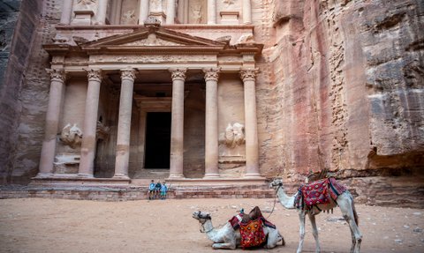 Die häufig als achtes Weltwunder der Antike bezeichnete Stadt Petra ist zweifelsohne der wertvollste Schatz und die größte Touristenattraktion Jordaniens. Vor über 2000 Jahren haben die Nabatäer, ein emsiges arabisches Volk, diese einzigartige Stadt direkt in die Sandsteinwände gemeißelt. Ihre Siedlung wurde zu einem wichtigen Handelsknotenpunkt, an dem Seidenstraßen, Gewürzrouten und andere Handelswege aus China, Indien und Südarabien mit Ägypten, Syrien, Griechenland und Rom zusammenkamen.