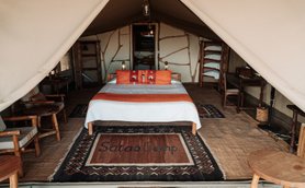 Zur Mittagszeit kommt ihr in eurer Unterkunft an und könnt euch nach einem schmackhaften Essen in eurem luxuriösen Safarizelt von der Fahrt erholen.
