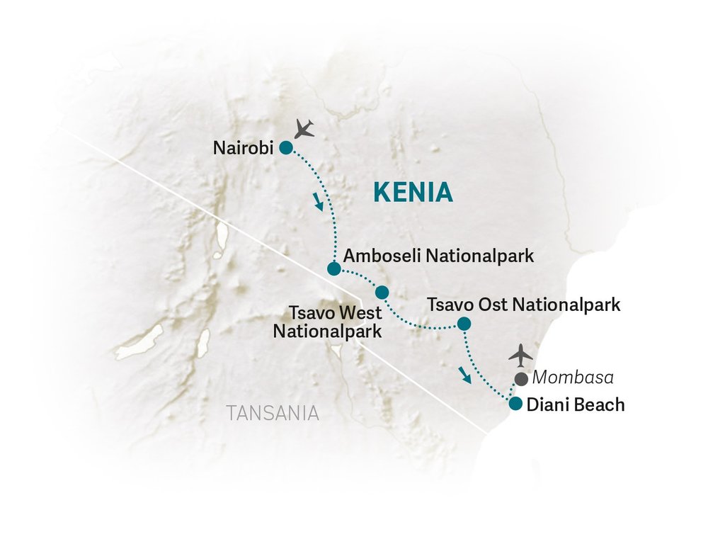 Erlebt mit eurer Familie das Beste, was Kenia zu bieten hat: majestätische Tierwelt, atemberaubende Landschaften und entspannte Tage am weißen Sandstrand. Diese exklusive Familienreise ist die perfekte Mischung aus Abenteuer und Erholung: Sie vereint unvergessliche Safari-Abenteuer in den berühmten Nationalparks Amboseli und Tsavo mit luxuriösem Strandurlaub am Diani Beach, einem der schönsten Küstenabschnitte der Welt.