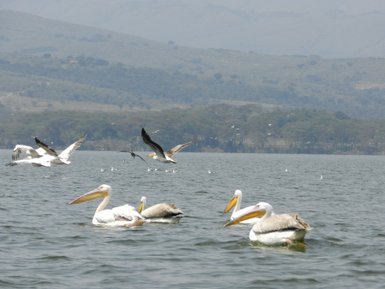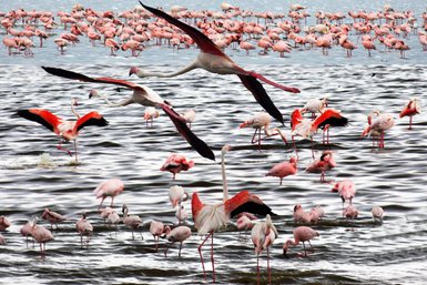 Zum Mittagessen erreicht ihr die Lodge und könnt euch etwas erholen, bevor ihr den Lake Elementaita besucht. An dem kleinen, stark alkalischen See leben und brüten viele Flamingos und Pelikane. Im See gibt es keine Fische. Früher lebten die vielen Flamingos vor allem am Lake Nakuru, wo sich auch heute noch riesige Kolonien befinden. Die einst bis zu zwei Millionen rosa Flamingos haben sich in den vergangenen Jahren wegen Dürren und anderen natürlichen Ursachen auf mehrere Seen über Kenia verteilt.