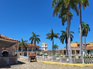 Dann kann das Abenteuer losgehen! Autofahren in Kuba ist nicht viel anders als das Fahren in Europa, und die Straßen sind nicht voll. Allerdings fährt man etwas langsamer. Die meisten kubanischen Straßen sind in recht gutem Zustand, trotzdem fährt man eher gemütlich – falls sich doch einmal ein Schlagloch auftut oder ihr durch die immer wieder vorausfahrenden Kutschen, Oldtimer oder Mopeds ausgebremst werdet. Der Vorteil: Wer langsam fährt, sieht auch viel mehr und erlebt die wunderschöne Landschaft mit kubanischer Gelassenheit!