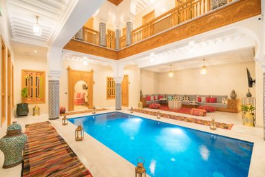 Heute startet eure Familienreise nach Marokko. Ihr fliegt von Deutschland nach Marrakesch, der Flug ist nicht im Reisepreis inbegriffen, wir unterstützen euch aber gerne bei der Suche nach einem passenden Angebot. In Marrakesch angekommen, werdet ihr am Flughafen von eurem privaten Reiseleiter abgeholt und zu eurem ersten Riad gebracht. Als Riad wird ein traditionelles marokkanisches Haus oder auch ein Palast bezeichnet, der in der Regel über einen Innenhof beziehungsweise inneren Garten verfügt. Der Begriff leitet sich vom arabischen Wort für Garten ab. Heutzutage werden viele Riads als Hotel genutzt. Den Rest des Tages steht euch zur freien Verfügung.