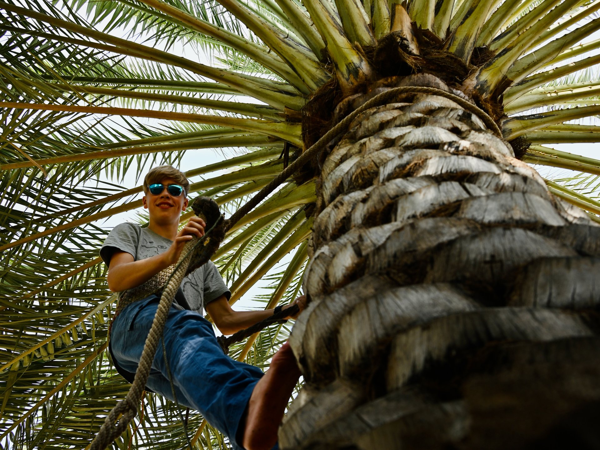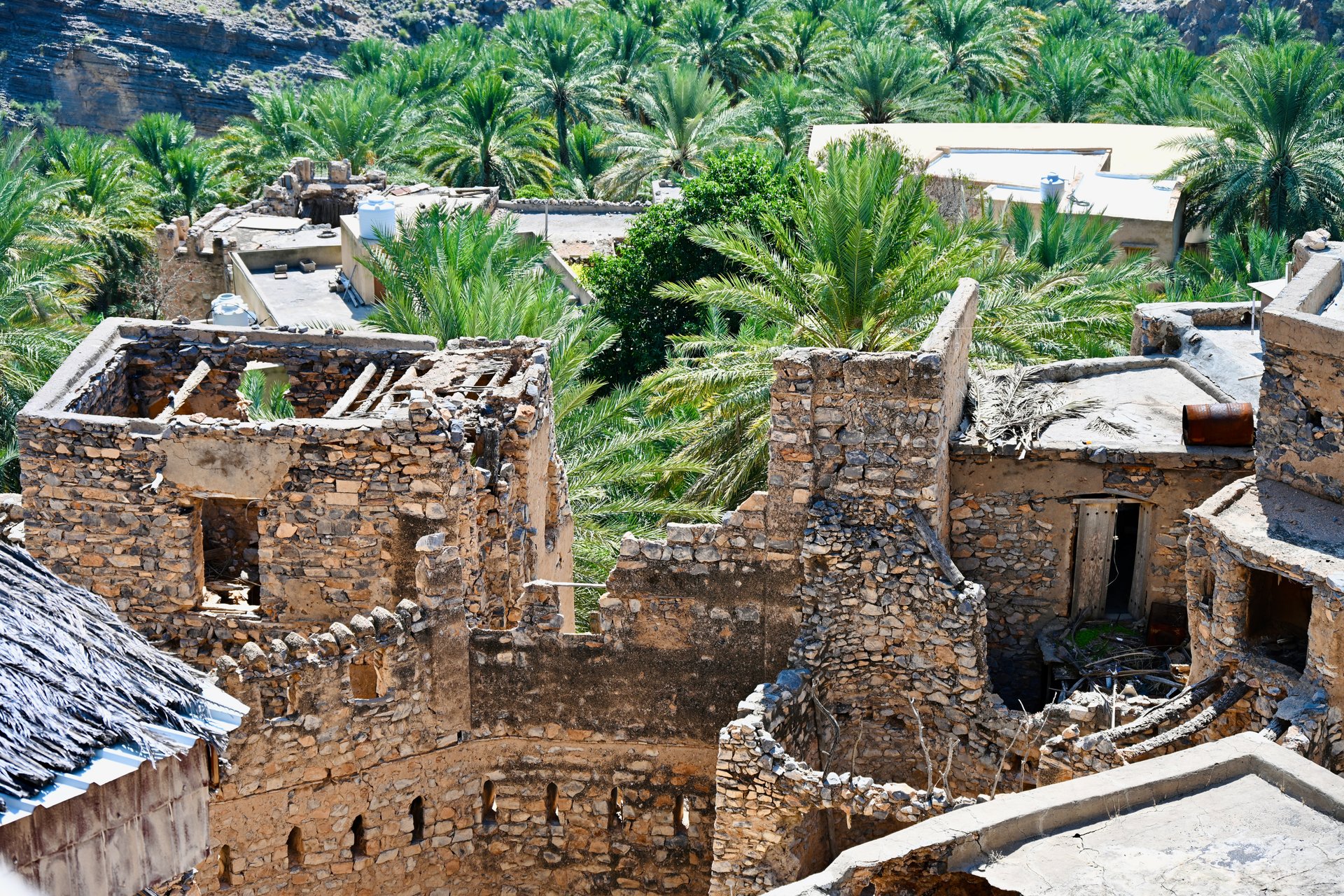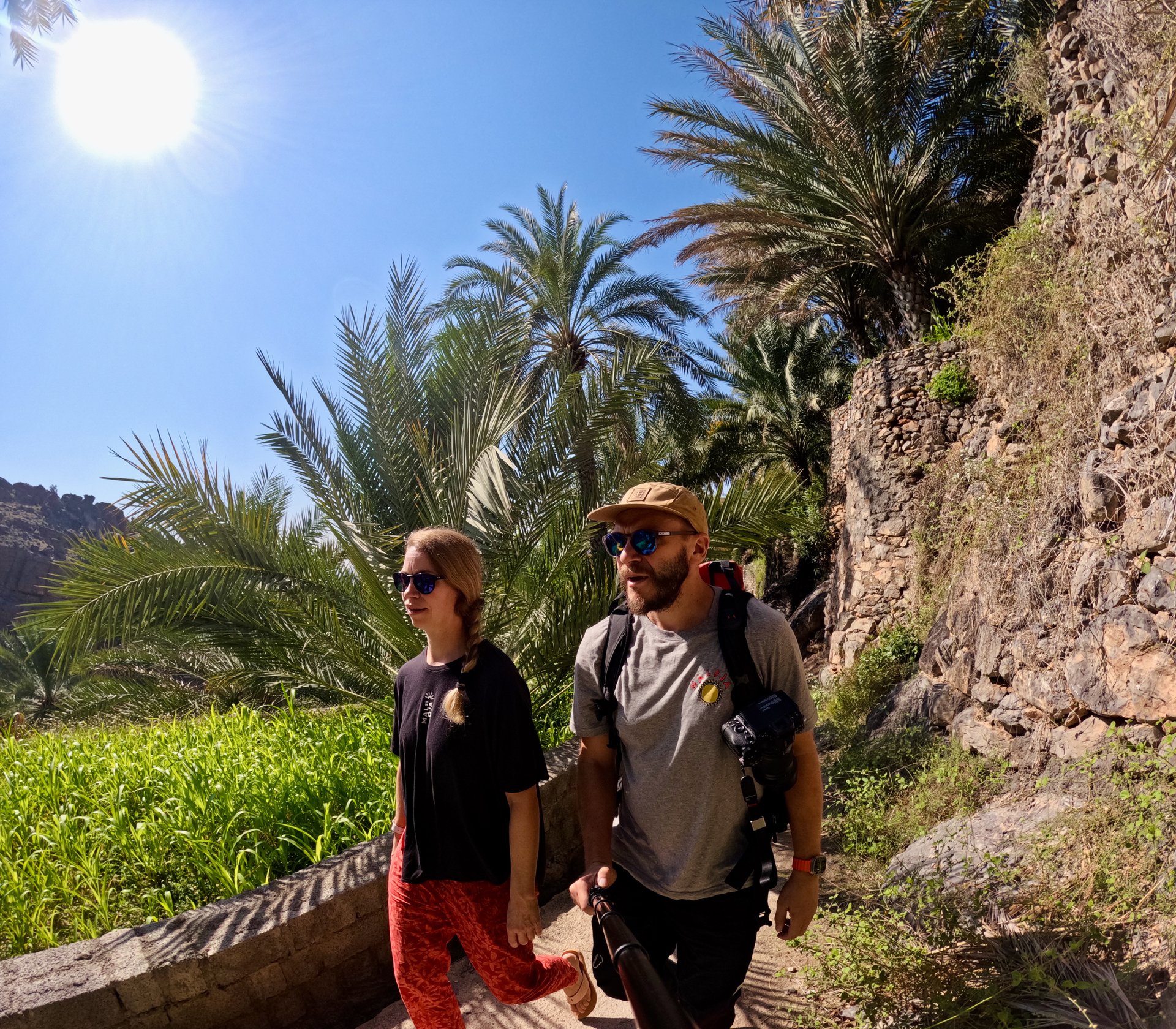 Danach fahrt ihr weiter auf den Grünen Berg Jebel Akhdar. Unterwegs könnt ihr im Dorf Birkat al Mauz stoppen, um den Wasserkanal Falaj al Kathmeen (UNESCO-Weltkulturerbe) zu besichtigen und einen gemütlichen Spaziergang durch die Dattelpalmenplantagen zu machen.