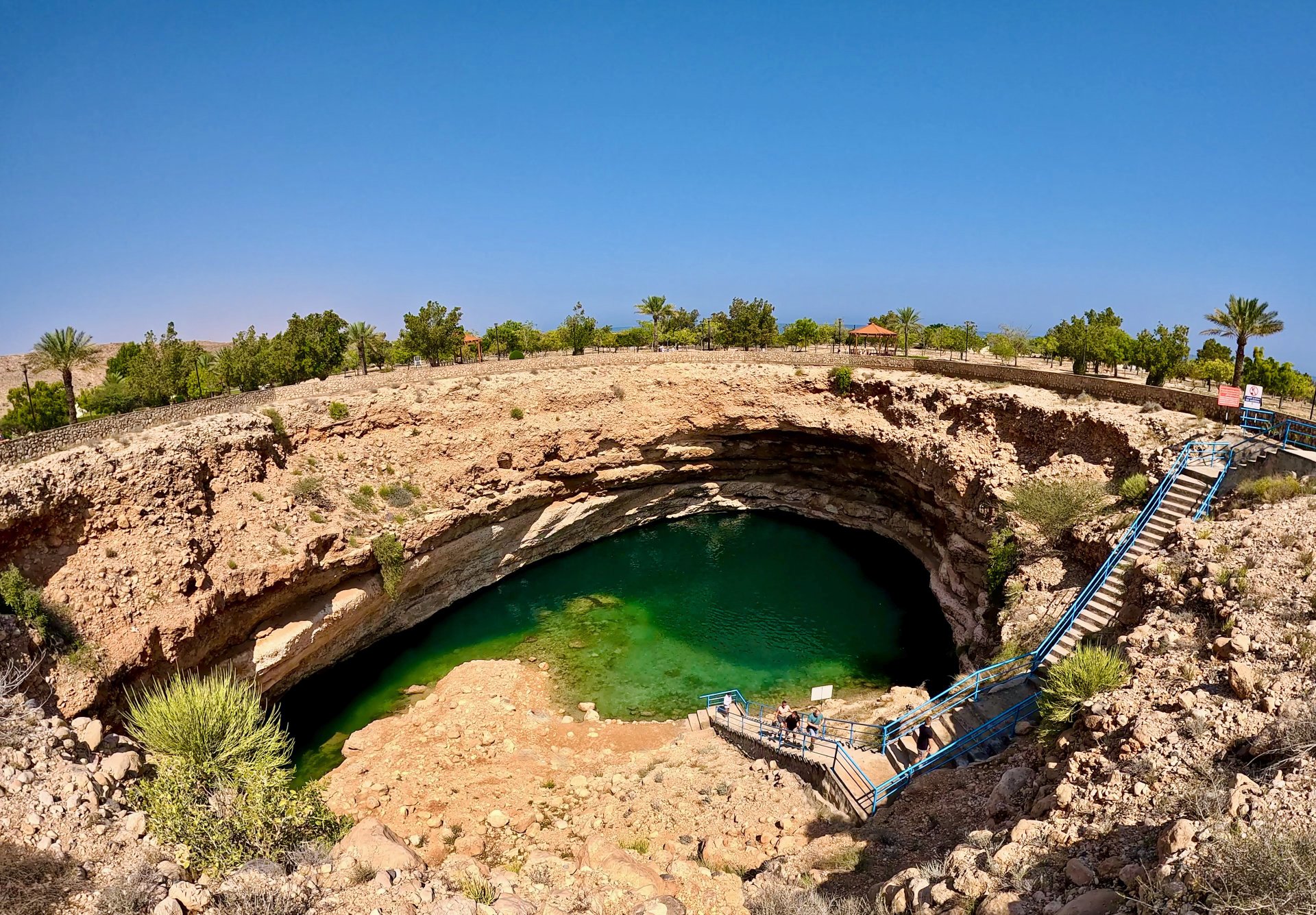 Was wäre eine Wüste ohne eine richtige Oase? Heute verlasst ihr die Wüste und fahrt zum Wadi Bani Khalid, der aus großen Naturpools mit türkisblauem Wasser besteht. Ein Wadi ist ein ausgetrockneter Flusslauf, der nur nach starken Regenfällen vorübergehend Wasser führt. Häufig sind an diesen Flussläufen deshalb Oasen zu finden. Für einen Zwischenstopp auf dem Weg zur Küste ist der Ort ideal und ein toller Kontrast zur Wüste. Die Einheimischen nehmen hier gern ein erfrischendes Bad und machen Picknick. Der Wadi liegt wunderschön und man kann darin herrlich baden, allerdings solltet ihr als Erwachsene die omanischen Sitten beachten und mindestens Badeanzug plus T-Shirt und Shorts tragen.