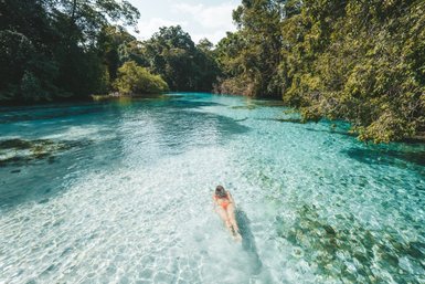 Die Unterbringung erfolgt in einer einfachen, sauberen Lodge, die im typischen Inselstil mit Palmendächern errichtet ist. Die tropische Umgebung und die ruhige Inselatmosphäre laden zum Abschalten ein und vermitteln das Gefühl, in die Zeit der Entdecker zurückversetzt zu werden. Diese Verlängerung eignet sich besonders für Familien, die komfortables Reisen schätzen und zugleich authentische Abenteuer in unberührter Natur suchen.