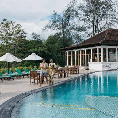 Dann fahrt ihr in euer schönes Hotel weiter. Nehmt die wunderbare, grüne Landschaft wahr und entspannt am Pool.
