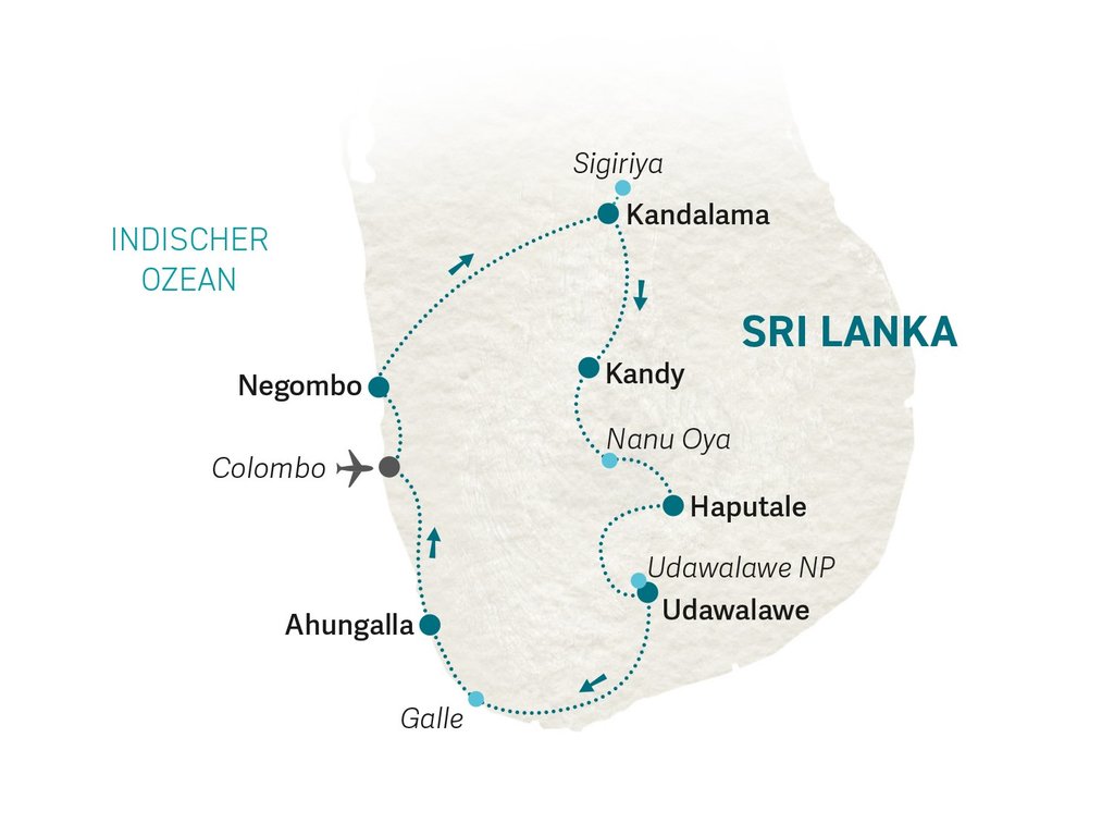 Flug nach Colombo (nicht inkludiert – persönliches Flugangebot auf Anfrage) • Transfer zur Unterkunft