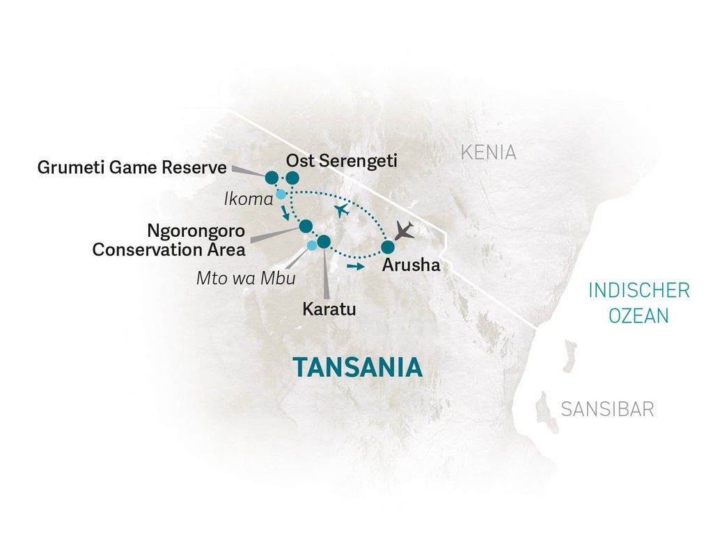 - Flug im Kleinflugzeug von Arusha nach Ikoma (inkl. 15 kg Freigepäck)