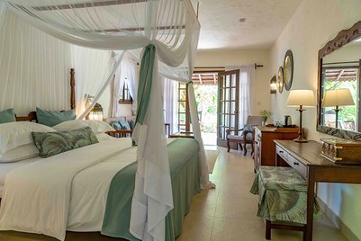 Entspannt am wunderschönen weißen Sandstrand. Neben dem Außenpool bietet euch diese Unterkunft einen Tennisplatz sowie ein Fitnesscenter. Auch kostenfreies WLAN steht euch zur Verfügung. In den 3 Restaurants erwartet euch jeden Tag ein anderes Menü/Buffet der traditionellen sansibarischen Küche.