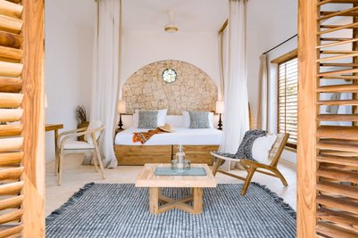Die Ausstattung umfasst ein großzügiges Schlafzimmer, ein Ankleidezimmer, ein schön gestaltetes Badezimmer sowie eine herrliche Veranda mit Sitzmöbeln. Es können max. 4 Personen in dieser Zimmerkategorie untergebracht werden.