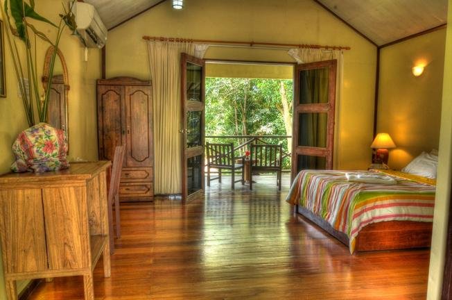Die Lodge bietet komfortable und geräumige Chalets, die sich harmonisch in den wilden tropischen Regenwald einfügen und ideal für Familien sind. Jedes Chalet verfügt über ein eigenes Bad, Klimaanlage, grundlegende Pflegeprodukte, einen Deckenventilator und einen eigenen Balkon.