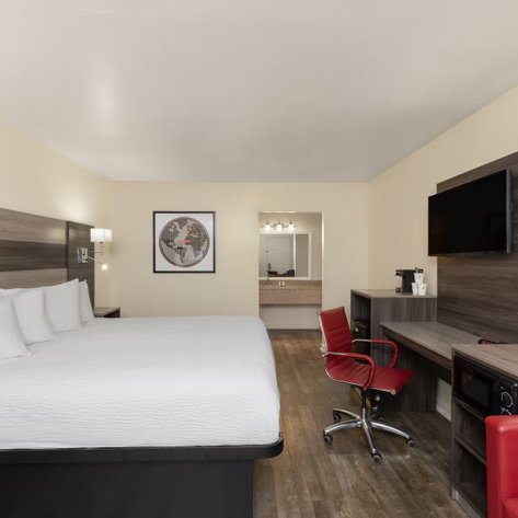Das Ramada by Wyndham Kingman liegt im charmanten Ort Kingman, Arizona, direkt an der berühmten Route 66 – und ist damit ein perfekter Zwischenstopp für Familien auf Rundreise durch den Südwesten der USA. Die Lage ist ideal, um Sehenswürdigkeiten wie das Route 66 Museum, den Hualapai Mountain Park oder den historischen Stadtkern von Kingman zu erkunden.