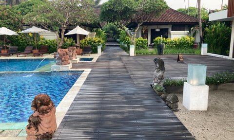 Das Ramayana Candidasa liegt inmitten einer bezaubernden blühenden Umgebung und nur wenige Minuten vom Dorf Tenganan entfernt. Die Unterkunft selbst verfügt über einen Pool zum Entspannen und einer eigenen Terrasse mit Schaukelbetten und Meerblick. Aufgrund der starken Strömung kann man hier jedoch nicht schwimmen.