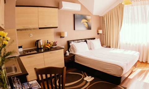 Die stilvoll eingerichteten Unterkünfte im Regnum Bansko Ski Hotel & Spa sind mit modernen Annehmlichkeiten ausgestattet und bieten höchsten Komfort. Jede Einheit verfügt über eine Klimaanlage, einen Schreibtisch, einen Kühlschrank, einen Safe, einen Flachbild-TV und ein eigenes Bad.