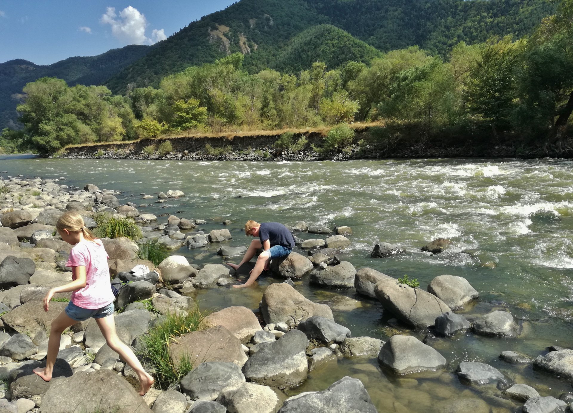 Die Georgienreise war sehr beeindruckend. Wir wurden von dieser sehr netten Reiseleiterin und diesem freundlichen Fahrer gleich am Flughafen abgeholt. Es war mit Ihnen eine schöne lustige persönliche Gemeinschaft. Die Fahrt zu dem Agravi-Fluss war landschaftlich traumhaft. Unser Naturerlebnis hatten wir beim Rafting: Am Himmel die Sonne, rechts und links die Berge und unter uns der sprudelnde Gebirgsfluss. Natürlich sind wir nass geworden, aber wir waren ja ganz und gar mit dem Paddeln beschäftigt.