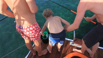 An Bord gibt es keinen straffen Zeitplan, sondern Wind, Wetter und die Lust auf Entdeckungen bestimmen den Tag. Die Yachten sind komfortabel, aber unkompliziert – mit allem ausgestattet, was man braucht. Alle helfen mit: beim Anlegen, beim Segelsetzen oder in der Kombüse. Gerade für Kinder wird das Boot schnell zu einem Spielplatz auf dem Wasser – mit dem Meer als größtem Pool direkt unter den Füßen.