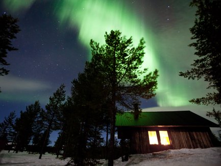 In Schwedisch Lappland übernachtet ihr auf einer echten Huskyfarm. Das Highlight der rustikalen Unterkunft ist die traditionelle Sauna, aber auch die tierischen Bewohner schließt ihr gewiss schnell in euer Herz: die liebevollen Huskys.
